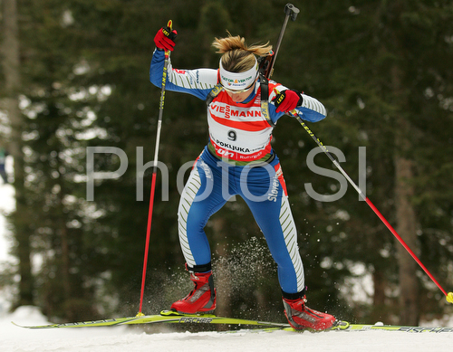 : Tadeja Brankovic-Likozar of Slovenia skiing in women sprint race of e.on Ruhrgas IBU Biathlon World Cup. Women individual race of e.on Ruhrgas IBU Biathlon World Cup was held in Pokljuka, Slovenia, on 13th of December 2007.