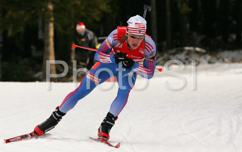 : Maxim Tchoudov of Russia skiing in men relay race of e.on Ruhrgas IBU Biathlon World Cup. Men relay race of e.on Ruhrgas IBU Biathlon World Cup was held in Pokljuka, Slovenia, on 16th of December 2007.