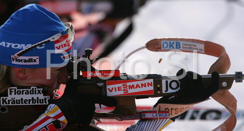 : Martina Glagow of Germany shooting in women relay race of e.on Ruhrgas IBU Biathlon World Cup. Women relay race of e.on Ruhrgas IBU Biathlon World Cup was held in Pokljuka, Slovenia, on 16th of December 2007.