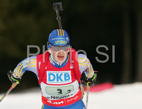 Pokljuka ,Slovenia - 16.12.2007 : Anna Carin Olofsson of Sweden skiing in women relay race of e.on Ruhrgas IBU Biathlon World Cup. Women relay race of e.on Ruhrgas IBU Biathlon World Cup was held in Pokljuka, Slovenia, on 16th of December 2007. Photo by: Primoz Jeroncic/PhotoSI