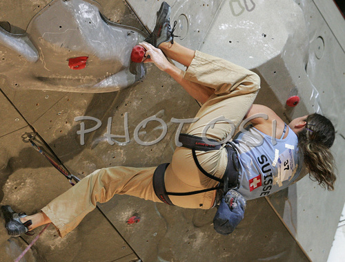 : Nina Caprez of Switzerland climbing in half finals of UIAA Climbing World Cup, which was held in Kranj, Slovenia on 18th of November 2006. First 8 from men and first 8 from women category qualified for finals which will be held in Kranj, Slovenia on 19th of November 2006.