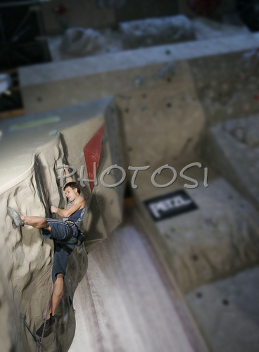 : Matej Sova of Slovenia climbing in half finals of UIAA Climbing World Cup, which was held in Kranj, Slovenia on 18th of November 2006. First 8 from men and first 8 from women category qualified for finals which will be held in Kranj, Slovenia on 19th of November 2006.
