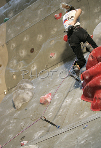 : Evgenia Malamid of Russia climbing during half finals of UIAA Climbing World Cup, which was held in Kranj, Slovenia on 18th of November 2006. First 8 from men and first 8 from women category qualified for finals which will be held in Kranj, Slovenia on 19th of November 2006.