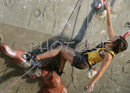 : Alena Ostapenko of Ukrain climbing during half finals of UIAA Climbing World Cup, which was held in Kranj, Slovenia on 18th of November 2006. First 8 from men and first 8 from women category qualified for finals which will be held in Kranj, Slovenia on 19th of November 2006.