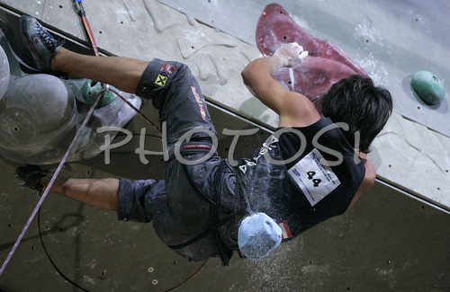 : David Lama of Austria climbing during half finals of UIAA Climbing World Cup, which was held in Kranj, Slovenia on 18th of November 2006. First 8 from men and first 8 from women category qualified for finals which will be held in Kranj, Slovenia on 19th of November 2006.