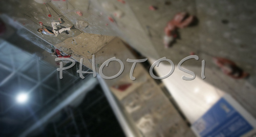 Kranj ,Slovenia - 18.11.2006 : Maja Vidmar of Slovenia (R) and Patxi Usobiaga of Spain (L) climbing during half finals of UIAA Climbing World Cup, which was held in Kranj, Slovenia on 18th of November 2006. First 8 from men and first 8 from women category qualified for finals which will be held in Kranj, Slovenia on 19th of November 2006. Photo by: Primoz Jeroncic/PhotoSI