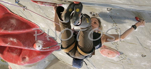: Angela Eiter of Austria climbing during half finals of UIAA Climbing World Cup, which was held in Kranj, Slovenia on 18th of November 2006. First 8 from men and first 8 from women category qualified for finals which will be held in Kranj, Slovenia on 19th of November 2006.