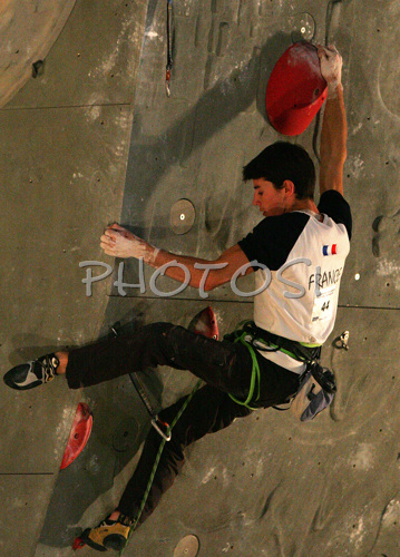 : Manuel Romain of France climbing in half finals of last IFSC Sport Climbing World cup of 2007 season. Semi finals for last IFSC Sport Climbing World Cup of 2007 season were held in Kranj, Slovenia on 17th of November 2007.