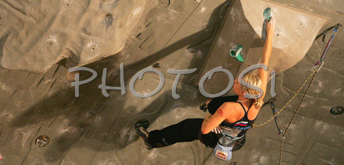 : Natalija Gros of Slovenia climbing in half finals of last IFSC Sport Climbing World cup of 2007 season. Semi finals for last IFSC Sport Climbing World Cup of 2007 season were held in Kranj, Slovenia on 17th of November 2007.