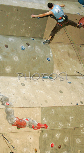 : Flavio Crespi of Italy climbing during men finals of last IFSC Sport Climbing World cup of 2007 season. Final race of IFSC Sport Climbing World Cup of 2007 season was held in Kranj, Slovenia on 18th of November 2007.