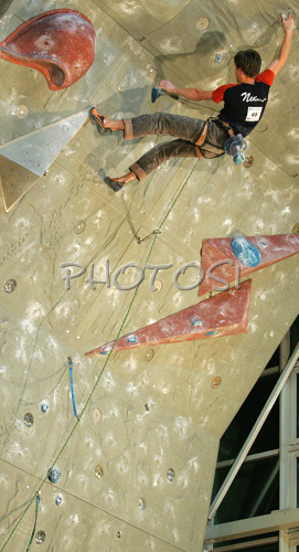 : Jorg Verhoeven of Netherland climbing during men finals of last IFSC Sport Climbing World cup of 2007 season. Final race of IFSC Sport Climbing World Cup of 2007 season was held in Kranj, Slovenia on 18th of November 2007.