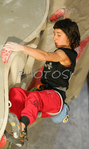 : Second placed Irati Anda Villanueva of Spain climbing during women finals of last IFSC Sport Climbing World cup of 2007 season. Final race of IFSC Sport Climbing World Cup of 2007 season was held in Kranj, Slovenia on 18th of November 2007.