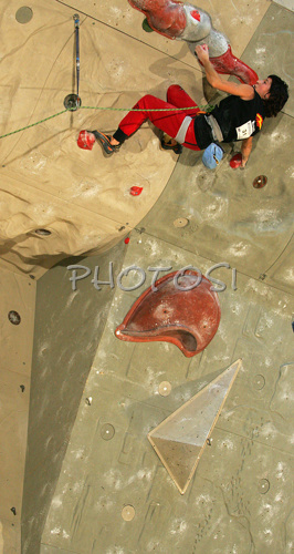 : Second placed Irati Anda Villanueva of Spain climbing during women finals of last IFSC Sport Climbing World cup of 2007 season. Final race of IFSC Sport Climbing World Cup of 2007 season was held in Kranj, Slovenia on 18th of November 2007.