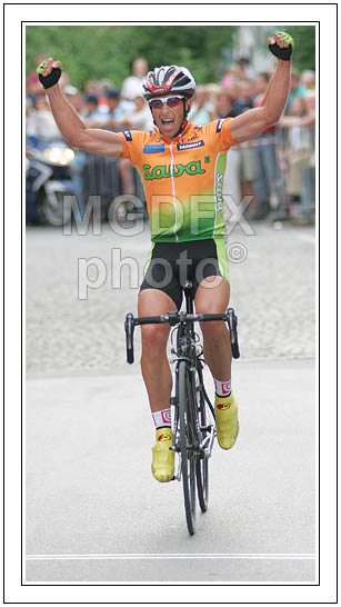 Kranj ,Slovenia - 04.06.2005 : Cyclists riding their bikes during road cycling race across the streets of Kranj. Cyclists had to finish more then 30 laps through streets of Kranj, before they had chance to sprint uphill for last time and try to win race. Valter Bonca of Sava Kranj won race after he was in leading group of three cyclists for more then 20 laps. Photo by: Primoz Jeroncic/PhotoSI