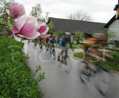 Sencur ,Slovenia - 27.04.2006 : Cyclists of elite group are cycling around streets of Sencur,Slovenia where Criterum of Sencur took place. Race with total lenght of 65km had 50 laps of 1.3km. Photo by: Primoz Jeroncic/PhotoSI