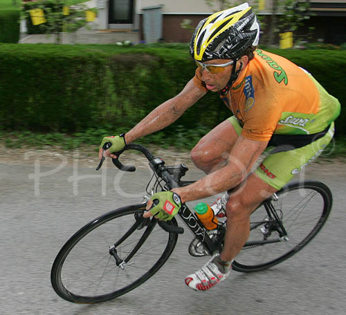 : Valter Bonca of Sava Kranj during elite race around streets of Sencur,Slovenia where Criterum of Sencur took place. Race with total lenght of 65km had 50 laps of 1.3km.