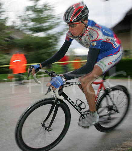 : Cyclists of elite group are cycling around streets of Sencur,Slovenia where Criterum of Sencur took place. Race with total lenght of 65km had 50 laps of 1.3km.