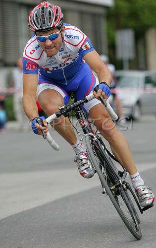 : Cyclists of elite category are competing during criterium road cycling race Around city of Kranj 2006 which was held in Kranj, Slovenia on 4th of June 2006.