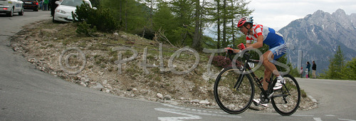 : Cyclists are fighting with last meters of uphill to Vrsic, Slovenia during third stage of 13th Tour de Slovenie 2006 (13. dirka Po Sloveniji). Third stage lead cyclists in lenght of 158km from Nova Gorica, Slovenia to top of Vrsic, Slovenia. Last uphill to Vrsic was also hardest uphill on this years Tour de Slovenia and it usually also decides winner of Tour.