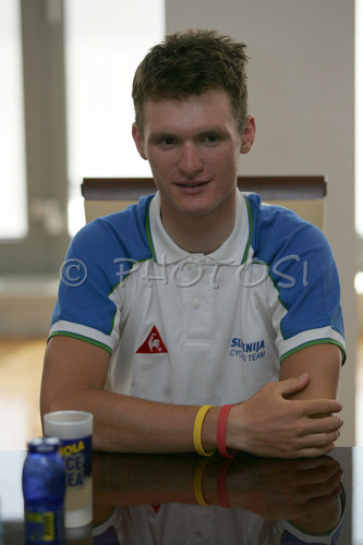 : Member of U23 team Grega Bole during press conference of Slovenian cycling team before European road cycling championship for juniors and U23 categories in Valkenburg Heerlen, Netherland. European championship will be held in Valkenburg Heerlen, Netherland between 12th and 16th of July, 2006.