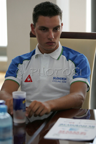 : Member of U23 team Simon Spilak during press conference of Slovenian cycling team before European road cycling championship for juniors and U23 categories in Valkenburg Heerlen, Netherland. European championship will be held in Valkenburg Heerlen, Netherland between 12th and 16th of July, 2006.