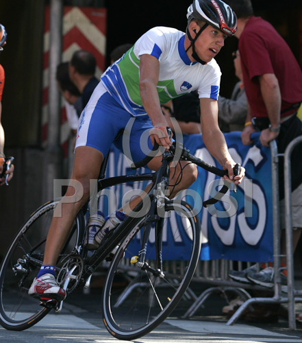 : Vladimir Kerkez of Slovenia riding during Men Under23 road races of Road Cycling World Championship in Salzburg, Austria. Road race of Road Cycling World Championship 2006 was held in Salzburg, Austria on 23. September 2006.