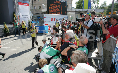 Salzburg ,Austria - 23.09.2006 : Photographers are waiting for medal ceremony to start after Men Under23 road races of Road Cycling World Championship in Salzburg, Austria. Road race of Road Cycling World Championship 2006 was held in Salzburg, Austria on 23. September 2006. Photo by: Primoz Jeroncic/PhotoSI