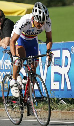 : In first two laps Alex Cano Ardila of Colombia was leading peloton during Men Elite road races of Road Cycling World Championship in Salzburg, Austria. Men Elite road race was final race of Road Cycling World Championship 2006 and was held in Salzburg, Austria on 24. September 2006.