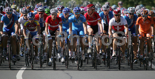 Salzburg ,Austria - 24.09.2006 : Peloton lead by Italian and German riders was going slow in first few laps of Men Elite road races of Road Cycling World Championship in Salzburg, Austria. Men Elite road race was final race of Road Cycling World Championship 2006 and was held in Salzburg, Austria on 24. September 2006. Photo by: Primoz Jeroncic/PhotoSI