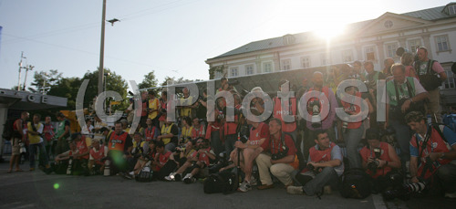 : Photographers are waiting for medal ceremony of Men Elite road races of Road Cycling World Championship in Salzburg, Austria. Men Elite road race was final race of Road Cycling World Championship 2006 and was held in Salzburg, Austria on 24. September 2006.