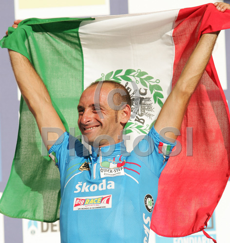 Salzburg ,Austria - 24.09.2006 : Paolo Bettini of Italy celebrating his medal and World Championship title won in Men Elite road races of Road Cycling World Championship in Salzburg, Austria. Men Elite road race was final race of Road Cycling World Championship 2006 and was held in Salzburg, Austria on 24. September 2006. Photo by: Primoz Jeroncic/PhotoSI