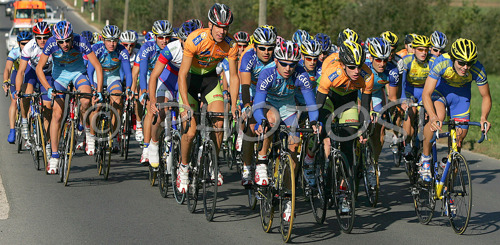 : Peloton at start of 6th Grand prix HiFi ColorStudio in Podsmreka near Ljubljana, Slovenia.6th Grand prix HiFi ColorStudio was final race for Trophy Scott gold bike (Scottovo Zlato Kolo) and was held on 15. October 2006 in Podsmreka pri Ljubljani, Slovenia.