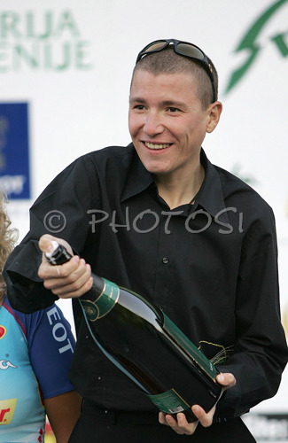 Podsmreka pri Ljubljani ,Slovenia - 15.10.2006 : Winner for trophy Scott Gold bike (Scottovo zlato kolo) in category Elite, Janez Brajkovic of Discovery Channel Cycling is celebrating his overall victory after 6th Grand prix HiFi ColorStudio in Podsmreka near Ljubljana, Slovenia.6th Grand prix HiFi ColorStudio was final race for Trophy Scott gold bike (Scottovo Zlato Kolo) and was held on 15. October 2006 in Podsmreka pri Ljubljani, Slovenia. Photo by: Mitja Smid Bricelj/PhotoSI