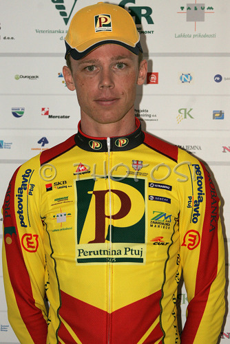 : Portrait of cyclist Matej Stare at presentation of UCI continental team KK Perutnina Ptuj. Presentation of UCI continental team KK Perutnina Ptuj was held at Ptujs castle, in Ptuj, Slovenia on 7th of February 2007.