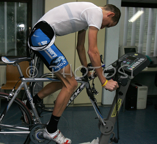Ljubljana ,Slovenia - 12.02.2007 : Janez Brajkovic of Discovery Channel Pro Cycling Team is performing special sport testing under supervision of dr. Radoje Milic, specialist of sport testings. Tests were done at Faculty of sport in Ljubljana, Slovenia on 12th of February 2007. Photo by: Mitja Smid Bricelj/PhotoSI