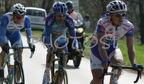 : Jure Zrimsek of KK Adria Mobil, Robert Vrecer of KK Radenska Powerbar and Edward Boasson Hagen of Team Maxbo Bianchi) cycling at 5th Porec Trophy. 5th Porec Trophy in lenght of 165 km, is categorized as UCI 1.2 and was held on 11th March 2007 in Porec, Croatia.