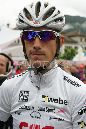 : 22-year old Andy Schleck of Team CSC, best young rider, getting ready before the start stage 16 of Giro d Italia 2007. Stage 16 in length of 189km lead cyclists from Agordo - Dolomiti Stars, Italy to Lienz, Austria, and was held on 29th of May 2007.