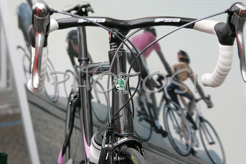 : Specially constructed bike for sponsor, Skoda auto before start of stage 19 of Giro d Italia 2007. Stage 19 in length of 178km lead cyclists from Treviso, Italy to Terme di Comano, Italy, and was held on 1st of June 2007.