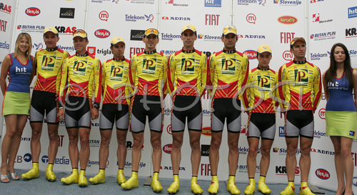 : Team Perutnina Ptuj before start of first stage of Tour de Slovenie 2007. First stage of Tour de Slovenie 2007 in lenght of 182km lead cyclists from Ljubljana, Slovenia to Zagreb, Croatia, and was held on 12th of June 2007.