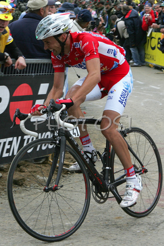 : Stefano Garzelli of Acqua e Sapone & Caffe Mokambo at last climb of the stage 17 of Giro d Italia 2007. Stage 17 in length of 142km lead cyclists from Lienz, Austria to Monte Zoncolan, Italy, and was held on 30th of May 2007.