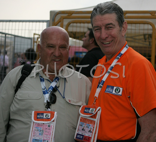: Radivoj Pecar, organiser and director of race for Trophy ZSSDI in company with "Legendary" 66- years old Felice Gimondi, (nick name "The Phoenix) at finish line of 18th stage of Giro d Italia 2007. Former Italian professional cyclist was second cyclist who won all three Grand Tours, Tour de France (1965), Giro d Italia (1967, 1969, 1976) and Vuelta e Espana (1968). Stage 18 in length of 208km lead cyclists from Udine, Italy to Riese Pio X, Italy, and was held on 31st of May 2007..