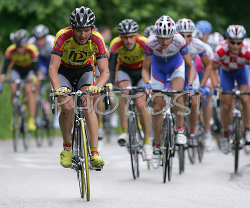 : Riders of Perurtning Ptuj dictating tempo on uphill during 40th Grand Prix Kranj, The Filip Majcen Memorial cycle race. 40th Grand Prix of Kranj took place on 2nd of June 2007 in Kranj, Slovenia.