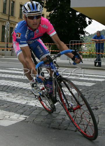 : Tadej Valjavec of Lampre-Fondital riding through streets of Kranj, Slovenia during road cycling race Around Kranj 2007. Race in lenght of 87.5km (25 laps) in Kranj, Slovenia was held on 3rd of April 2007.