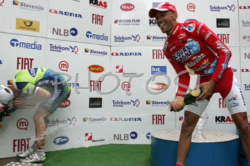 : Winner of second stage Stefano Garzelli of Acqua Sapone-Caffe Mokambo celebrating his victory in second stage of Tour de Slovenie 2007. Second stage in lenght of 163km lead cyclists from Sentjernej, Slovenia to Ljubljana, Slovenia, where finish line was in Ljubljana castle.
