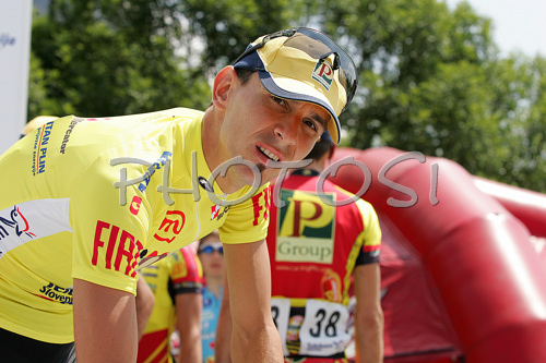 : Mitja Mahoric of Perutnina Ptuj signing start list before start of third stage of Tour de Slovenie 2007. Third stage in lenght of 168km lead cyclists from Medvode, Slovenia to Villach, Austria.