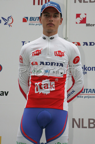 Vrsic ,Slovenia - 15.06.2007 : Simon Spilak of Adria Mobil in white jersey after fourth stage of Tour de Slovenie 2007. Fourth stage in lenght of 160km lead cyclists from Kranjska Gora, Slovenia to top of Tour de Slovenia, 1611 meters high pass Vrsic, Slovenia. Photo by: Mitja Smid Bricelj/PhotoSI