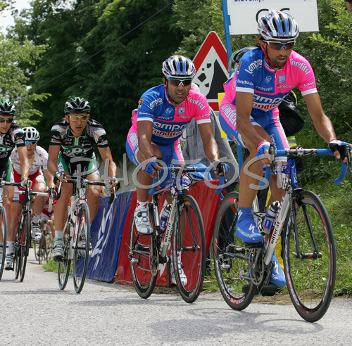 Novo Mesto ,Slovenia - 16.06.2007 : Fabio Baldato of Lampre-Fondital (front) and his teammate Danilo Napolitano (back) during fifth and last stage of Tour de Slovenie 2007. Fifth stage in lenght of 162km lead cyclists from Grosuplje, Slovenia to Novo Mesto, Slovenia, where this years Tour de Slovenie crossed its final finish line. Photo by: Mitja Smid Bricelj/PhotoSI