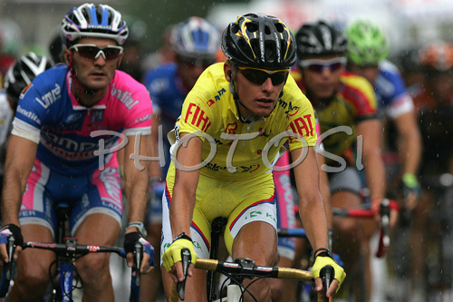 : Gorazd Stangelj of Lampre-Fondital (L) and overall leader Tomaz Nose of Adria Mobil (R) riding during fifth and last stage of Tour de Slovenie 2007. Fifth stage in lenght of 162km lead cyclists from Grosuplje, Slovenia to Novo Mesto, Slovenia, where this years Tour de Slovenie crossed its final finish line.