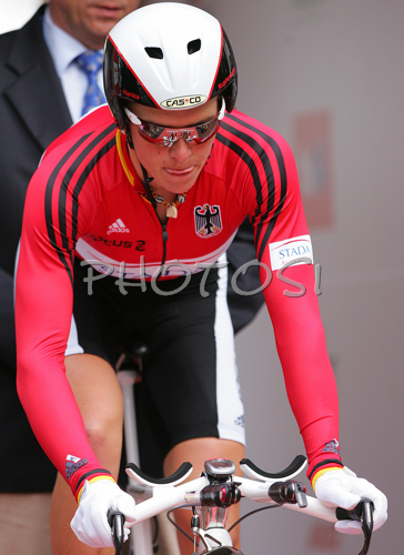 : Hanka Kupfernagel of Germany on start of Women Time Trial race of UCI Road Cycling World Championships. Women Time trial race was held on 26th of September 2007 in Stuttgart, Germany.