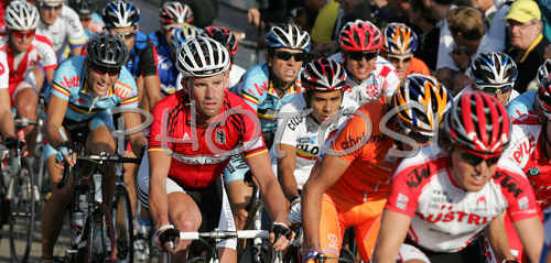 : Stefan Schumacher of Germany riding during Men Elite road races of UCI Road Cycling World Championships. Men Elite road race World Championships was held on 30th of September 2007 in Stuttgart, Germany.
